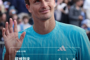 体育资讯4月26日讯 ATP1000马德里大师赛次轮,2号种子兹维列夫以6-1 3-6 6-3淘汰阿根廷选手纳沃内,晋级第三轮。